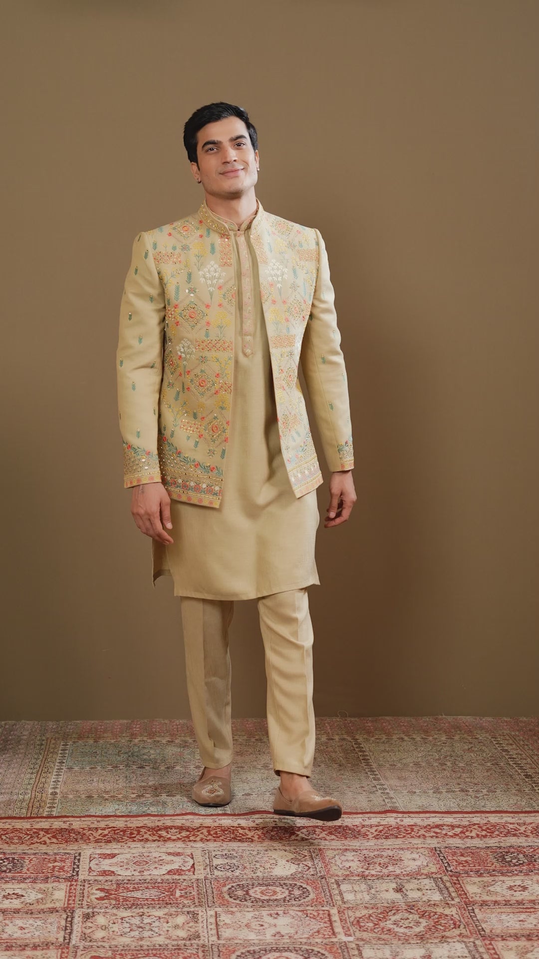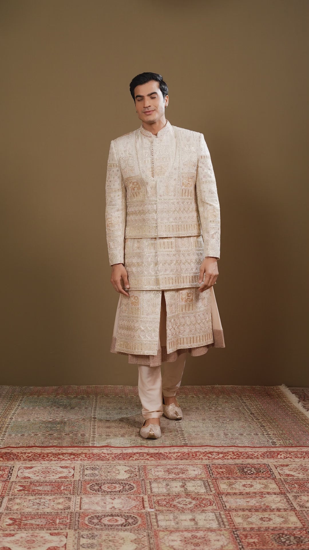 Elevate your fashion quotient by shopping royal and exclusive Sherwani for groom to be, trendy and classy Long Jacket Sets, suave and dapper collection of Suits, traditionally rich Jodhpuri, comfortable and breathable Indo Westerns and Blazers, exclusive Kurta Sets, classic and fashionable Kurtas, or elegant Jacket Sets. The intricacy of the design is the best you will find in the industry, with the most renowned and celebrated designers creating a plethora of attires to help you be your most fashionable self!