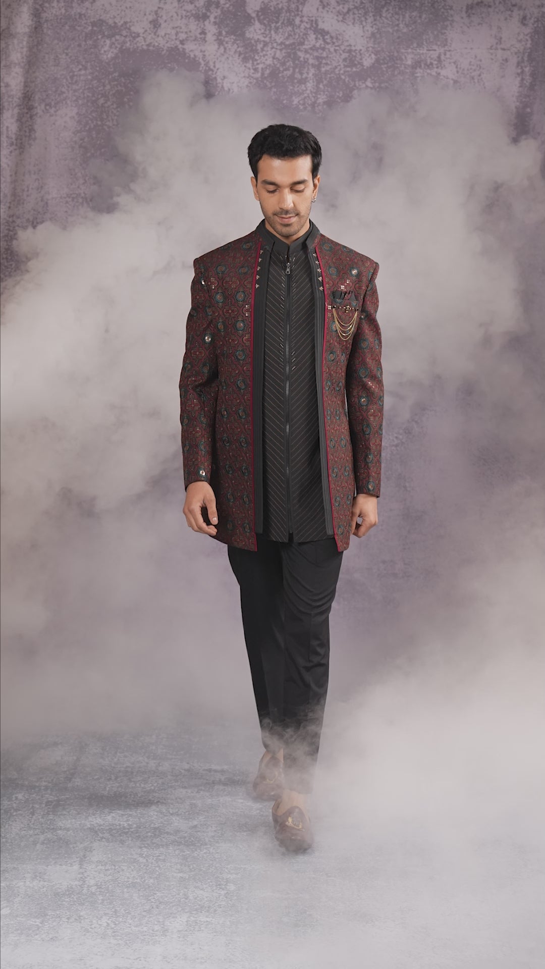 Wine Silk Indo Western with Aari, Bead & Cut Dana Work