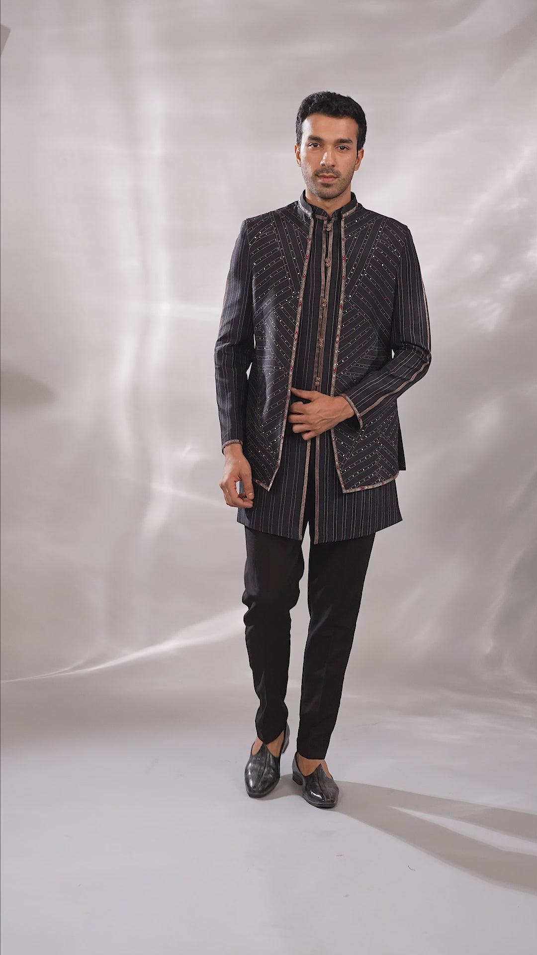 Black Silk Indo Western with Aari, Zardosi & Sequence Work