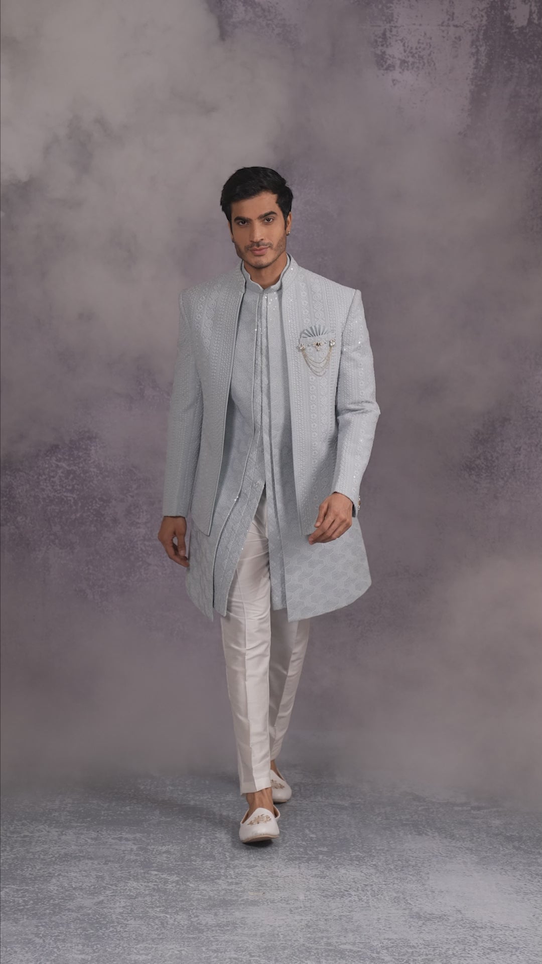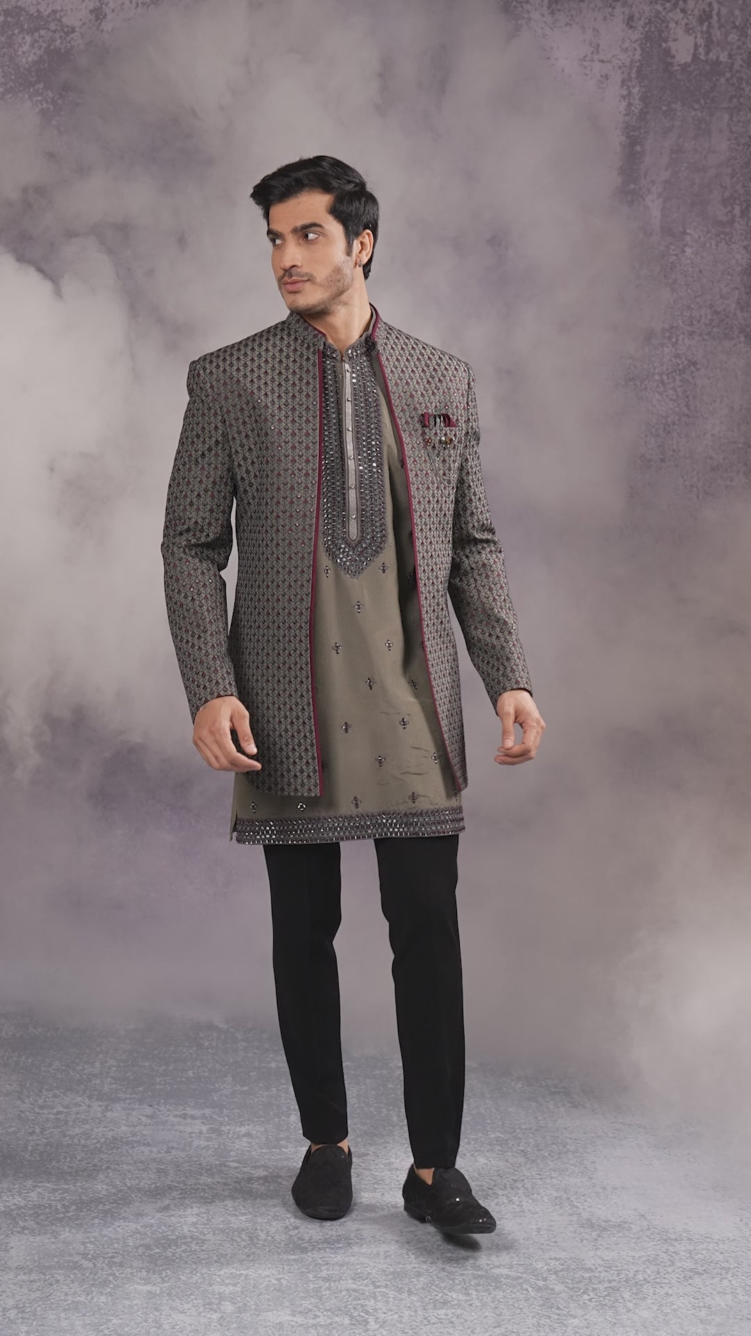 Grey Silk Indo Western with Silver Thread & Sequence Work