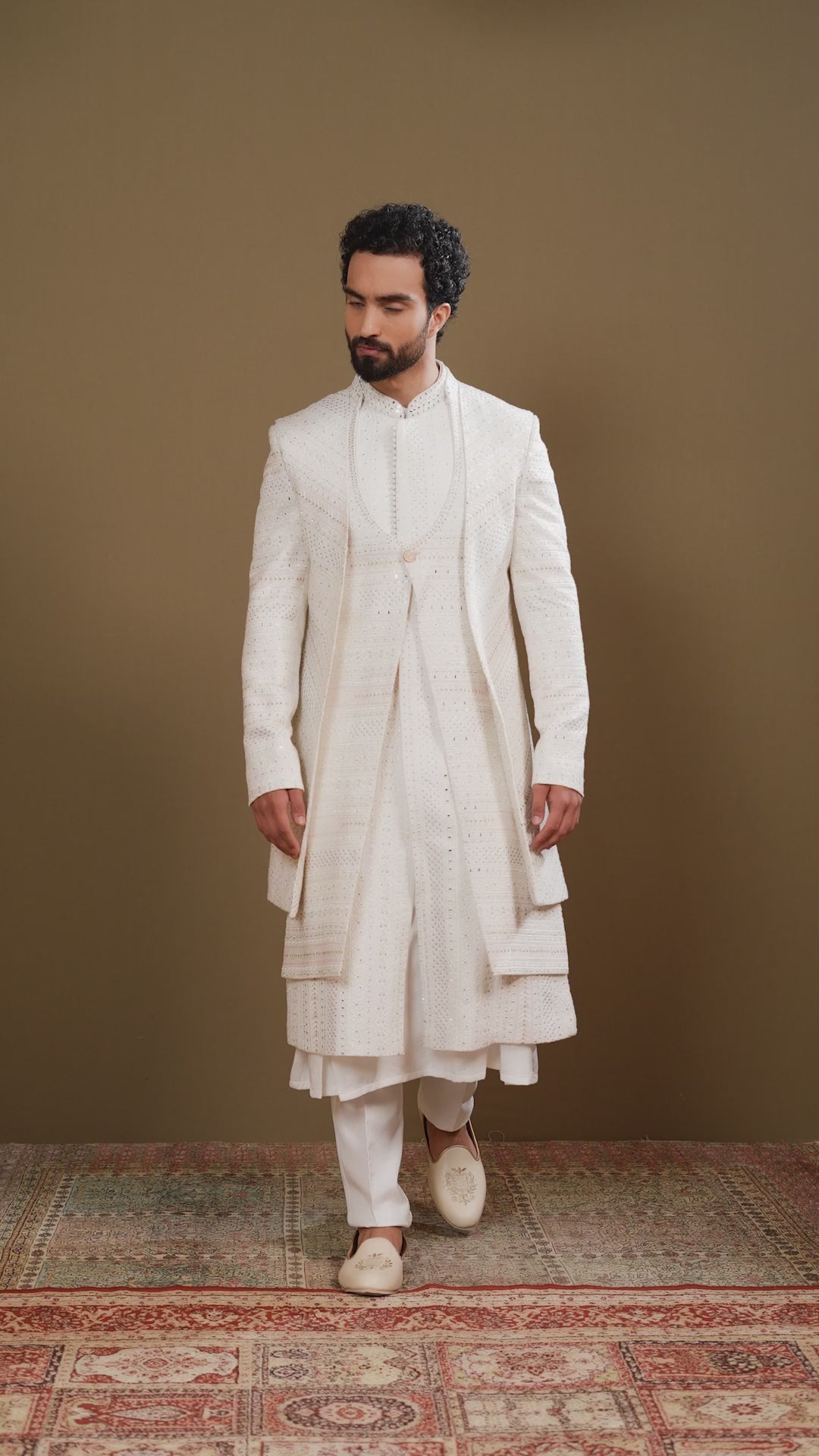 | Dupatta/Stole | Drape over one shoulder or both, with slight pleats | Coordinate color with sherwani embroidery |
