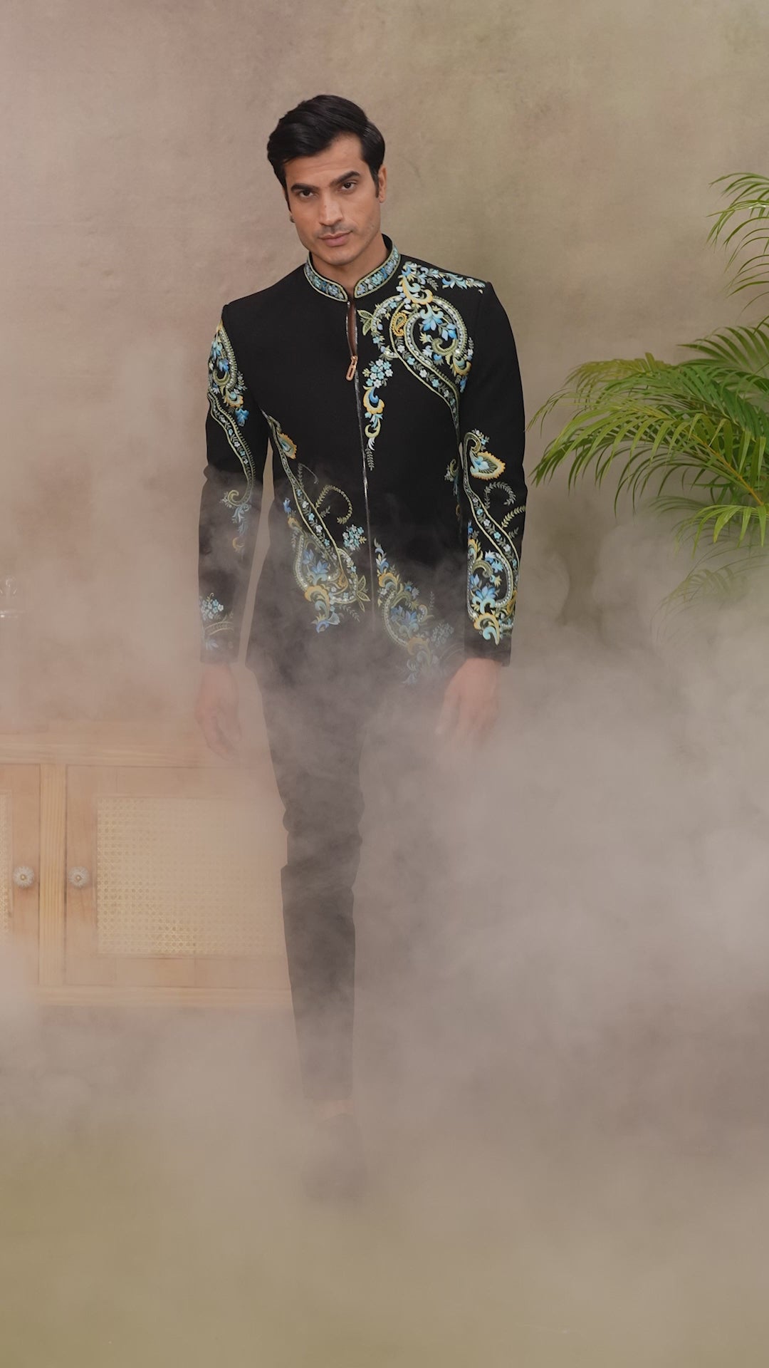 Black Jodhpuri Suit with Resham Work Classic Style