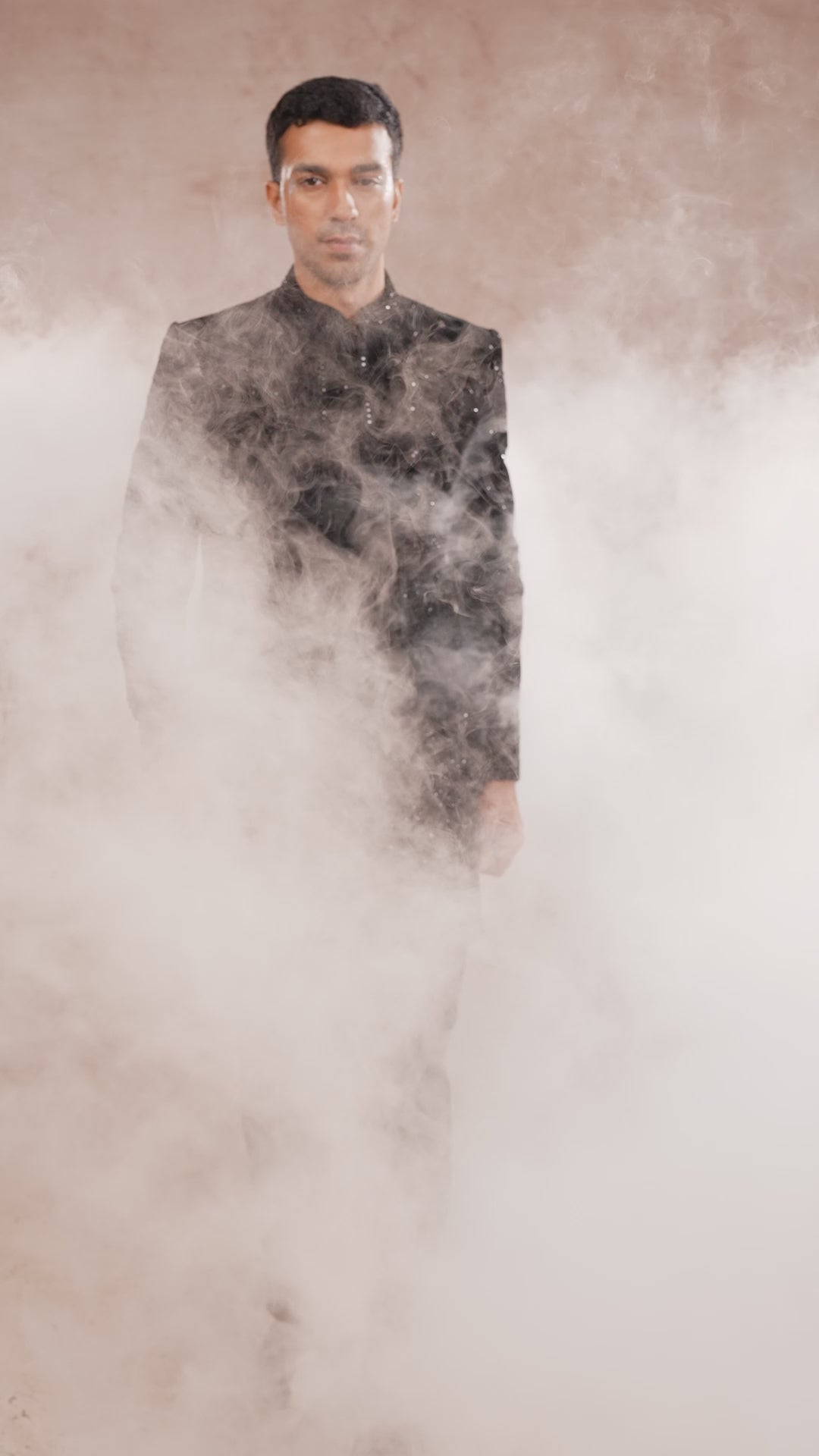 Designed for the modern Groom and Dulha who love fashion, this Black Silk Indo Western will create a strong style impression. Combining grace with modern flare, the 3-piece set consists of a sleek jacket, kurta, and pants. The polished bead and sequence enhance this dress, transforming it and rendering it ideal for celebrations, banquets, or weddings. Its deep black color highlights your entire outfit and provides a flexible yet unique style that identifies you every day.
