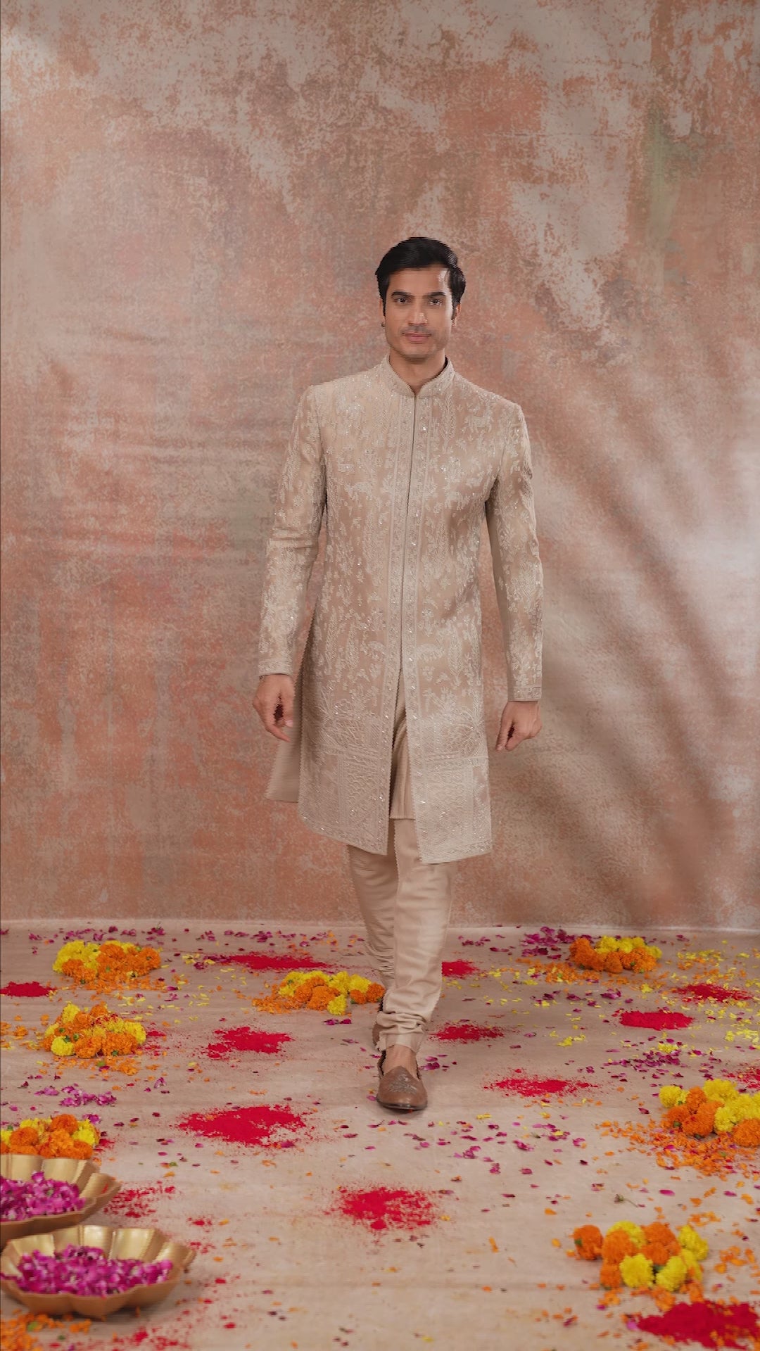 Designed for wedding-focused styling, this Sherwani for Groom pairs well with classic mojris, layered accessories, and matching stole options. It suits grooms and close family members who want refined ethnic wear without heavy colour contrasts. From ceremonial entrances to family photographs, this Wedding Sherwani maintains its presence throughout long events and cultural celebrations, making it suitable for memorable wedding functions and important family occasions.