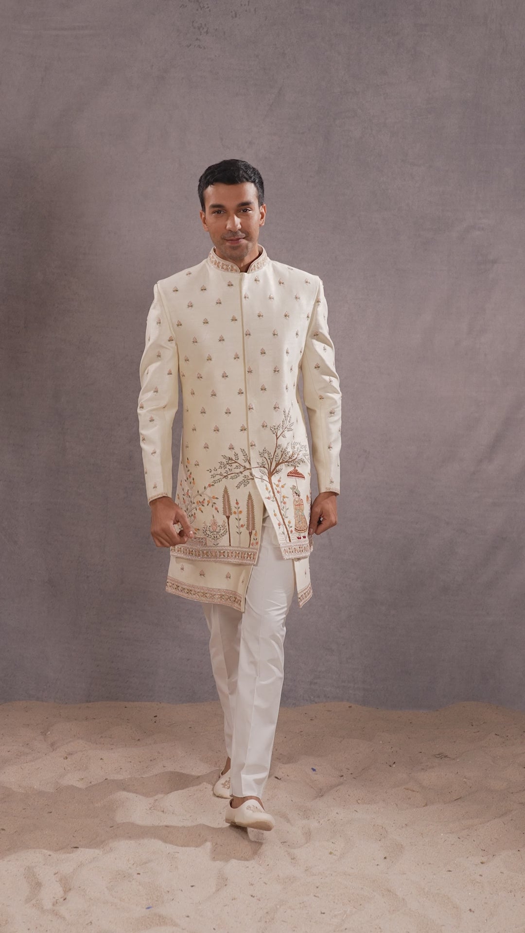 Ivory Dupion Silk Indo Western with Human Figure Embroidery