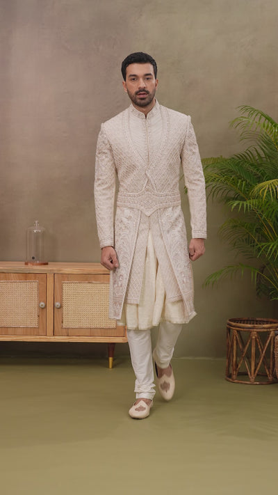 Light Cream Silk Sherwani with Resham Aari Zardoshi Work