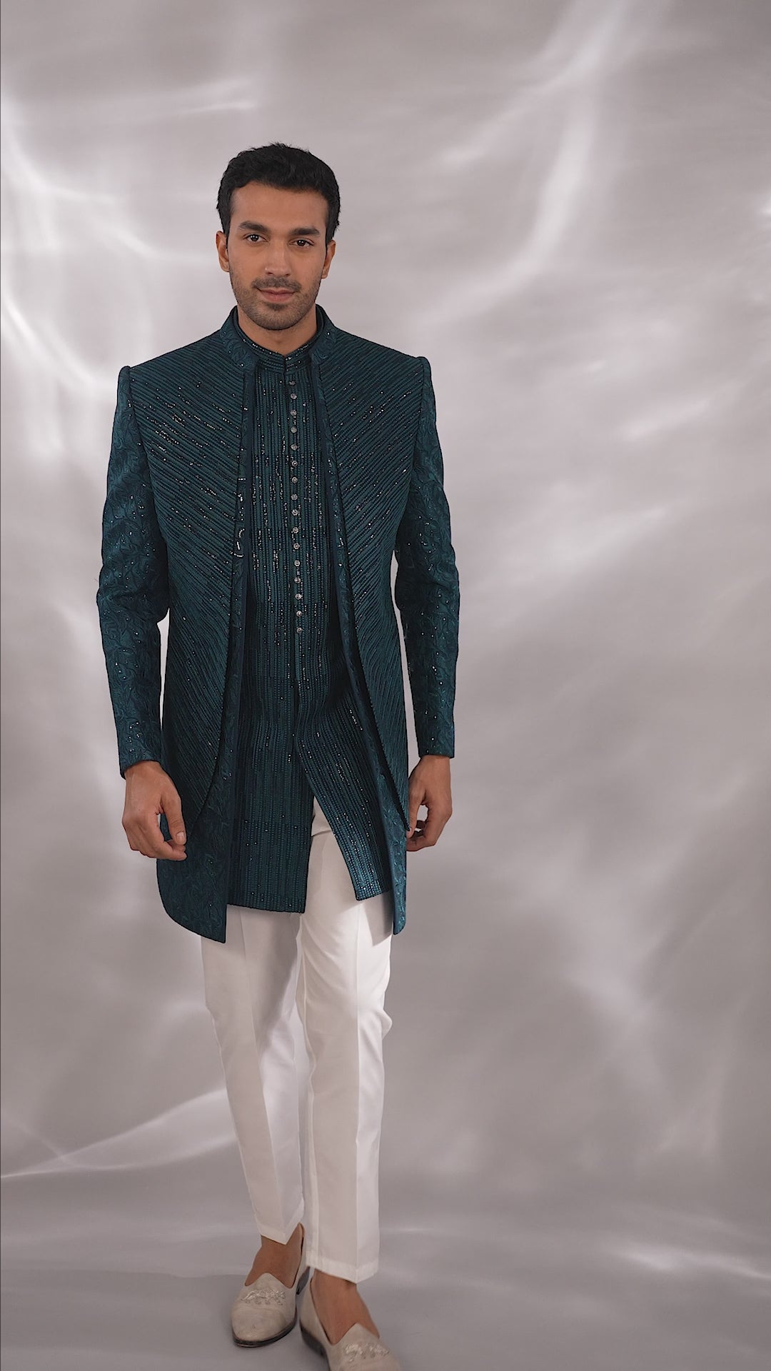 Turquoise Blue Silk Indo Western with Resham & Sequence Work